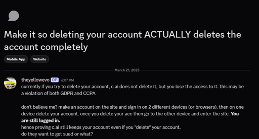 Is it asshole design? No. And it’s not for privacy reasons. it’s because the vast majority of people who hit delete will call the next day and yell and scream saying “But I didn’t know it would delete everything”. That’s why Meta keeps it, and Youtube, and Google, and everyone.