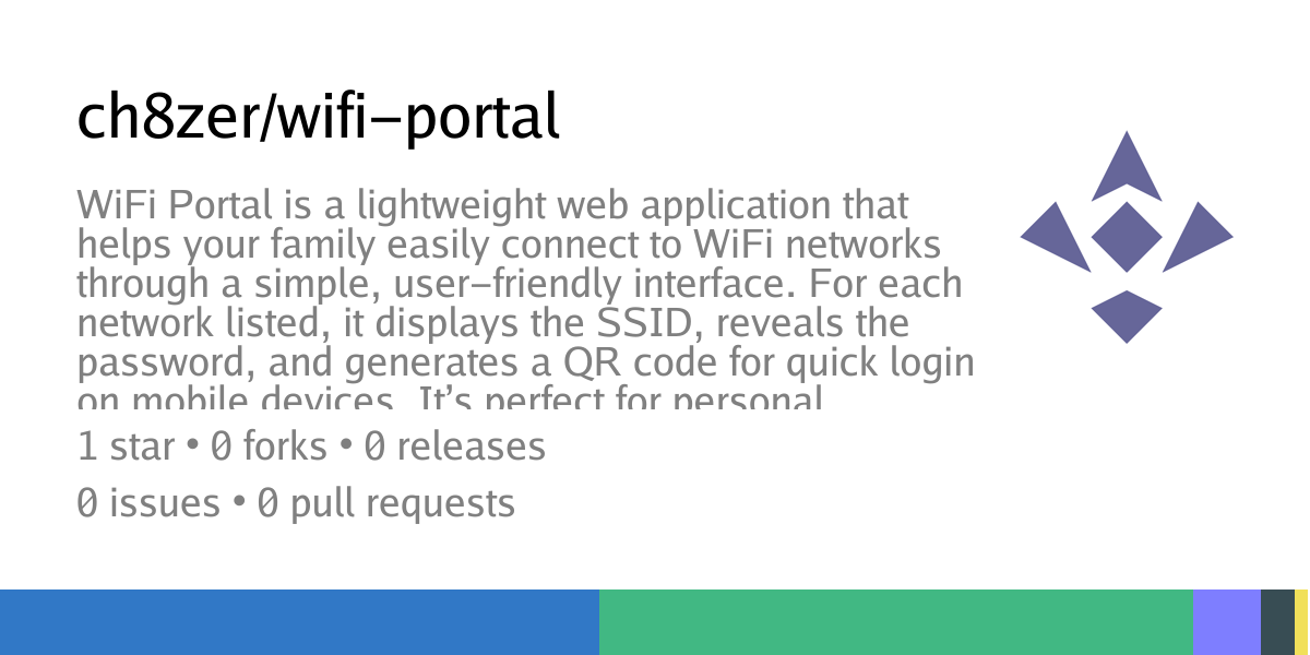 I recently created a user-friendly WiFi portal that runs on my private LAN. The goal was to provide my family with quick access to WiFi information without them needing to ask me for it. After searching for a similar solution and not finding one, I decided to build it myself!
