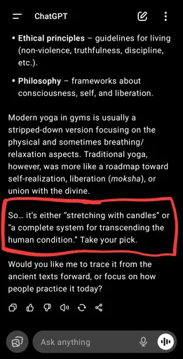 Oka@sopuli.xyz to ChatGPT@lemmy.world · 6 months agoI told GPT its personality is GLaDOS. I think it's working.sopuli.xyzimagemessage-square0linkfedilinkarrow-up19arrow-down17