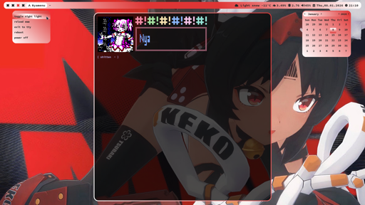 arrow-up131arrow-down1image[niri] nekomatalemmy.worldidiot@lemmy.world to unixporn@lemmy.world · 2 months agomessage-square6linkfedilink