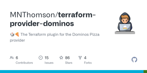 moonpiedumplings@programming.dev to Programmer Humor@programming.devEnglish · 2 months agoTerraform plugin for the Dominos Pizza providergithub.comexternal-linkmessage-square4linkfedilinkarrow-up1116arrow-down12