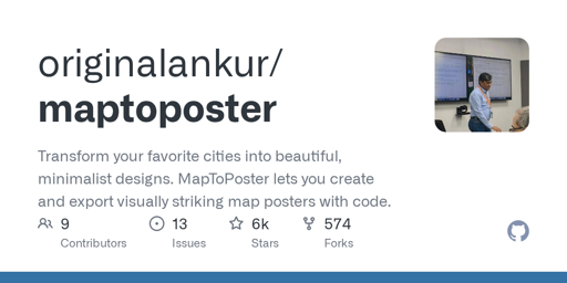 arrow-up159arrow-down1external-linkTransform your favorite cities into beautiful, minimalist designs. MapToPoster lets you create and export visually striking map posters with code.github.com☆ Yσɠƚԋσʂ ☆@lemmy.ml to Open Source@lemmy.mlEnglish · 4 days agomessage-square5linkfedilink