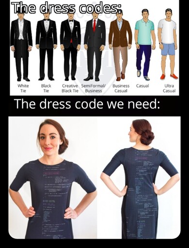 I’m so confused. Business casual has always meant nice pants, button down shirt, but no tie or overcoat where I’ve been. I’ve also never seen the distinction between ultra casual and casual… maybe ‘work casual’ compared to ‘casual.’